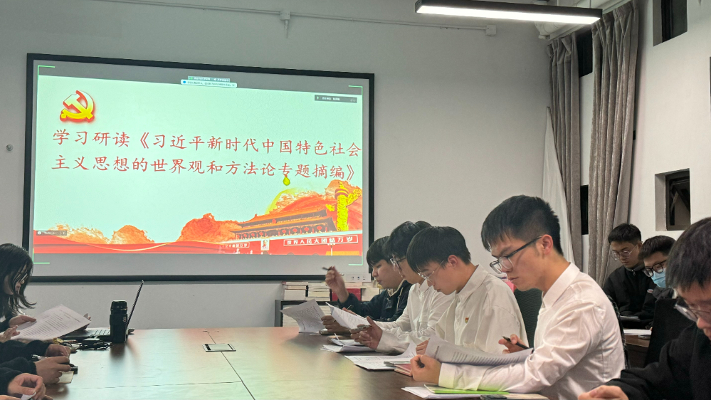 坚持专题研讨,促进理论学习提质增效。各党支部结合工作实际,以示范领学、争先联学、自主研学等形式持续学习主题教育相关学习材料,包括党的二十大报告和党章、《习近平著作选读》、《习近平新时代中国特色社会主义思想专题摘编》等,学习习近平法治思想和习近平总书记关于宪法的重要论述,大力加强宪法学习宣传。学生党支部围绕“挺膺担当,做新时代好青年”、“党风廉政建设如何走深走实”等专题展开讨论,分享入党故事,组织签订党员承诺践诺书,激励党员同志在服务师生、走进群众,奉献社会中发挥带头示范作用。